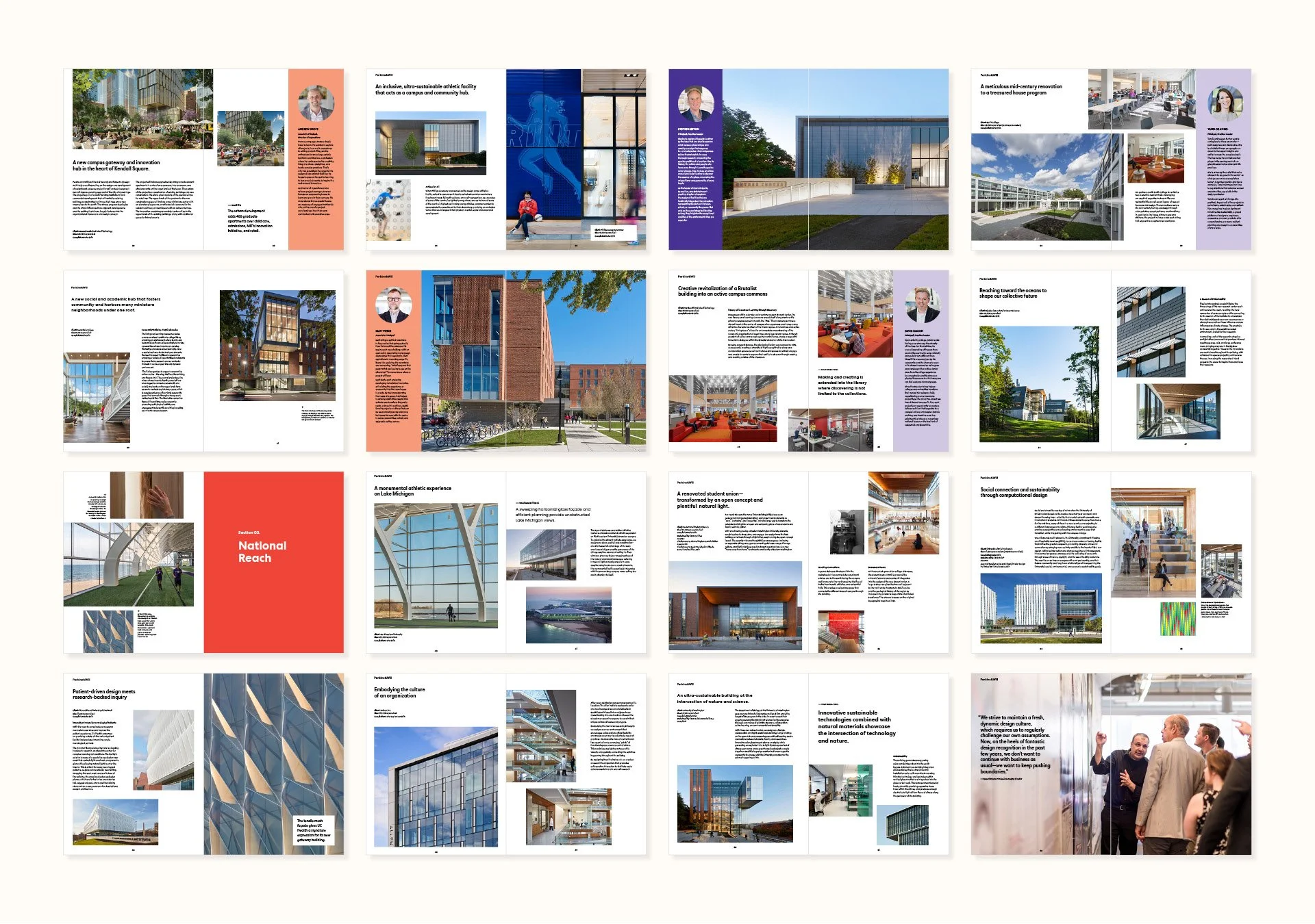 This document features customized versions of branded layout templates. For example, design leaders are not typically highlighted on project cut sheets, so a simple, editorial solution was needed to articulate key person-project connections.